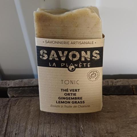 Ce savon est fabriqué à base de Thé vert , Ortie, Gingembre, Lemon grass. Enrichi à l'huile de chanvre