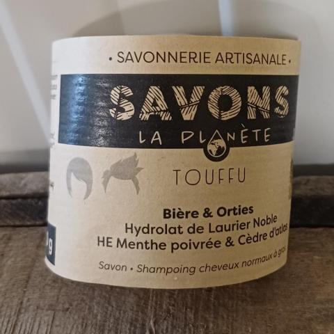 Ce shampoing est fabriqué à base de bière et d'orties. Hydrolat de laurier noble, Huile essentielle de menthe poivrée et cèdre d'atlas