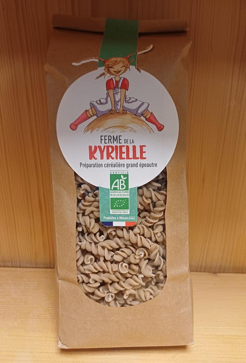 Produites par la ferme de le Kirielle à Mouais. Sarah fabrique sur sa ferme des pâtes au blé dur produit en agriculture biologique sur ses terres, Coquillette, lasagne, fusili et macaronis