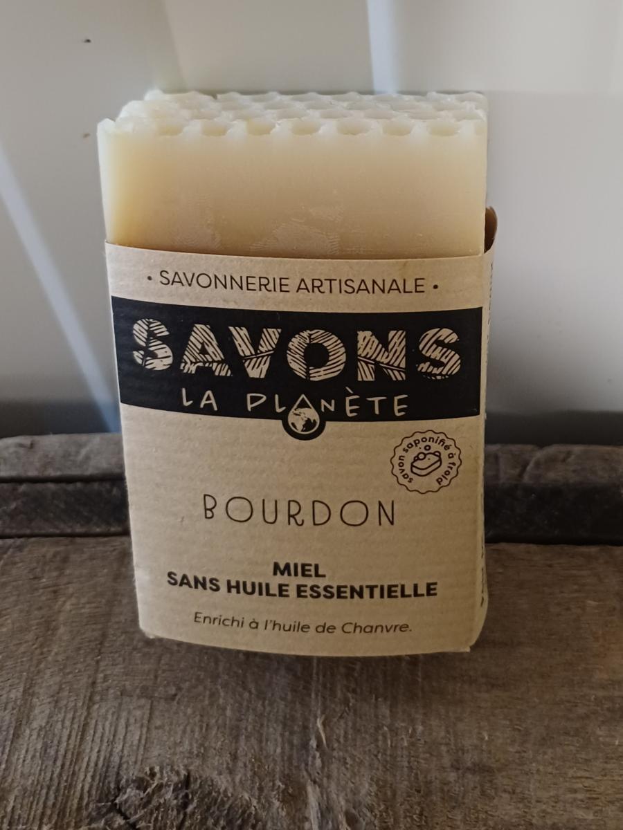 Ce savon est fabriqué à base de Miel, sans huile essentielle . Enrichi à l'huile de chanvre